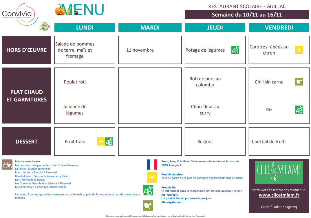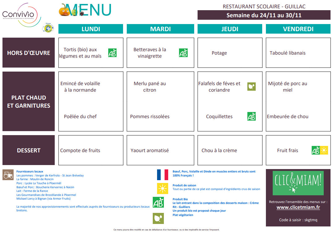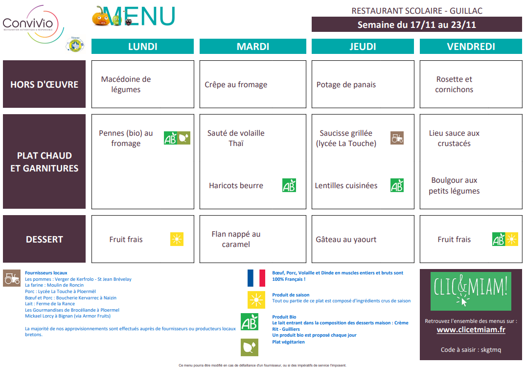 Les inscriptions occasionnelles ainsi que les absences doivent être impérativement signalées à La Médiathèque le matin même entre 8H30 et 9H00, par téléphone 02 97 74 11 60, ou par mail : cantine.guillac@gmail.com