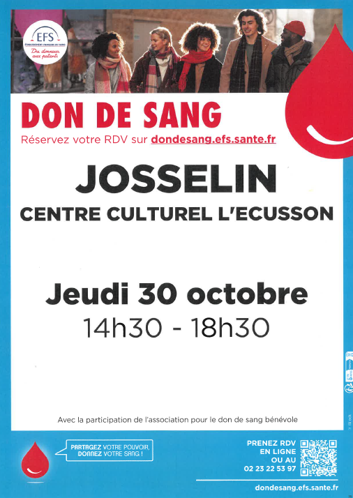 Top départ pour Octobre C'est pas le mois pour avoir peur du sang... mais plutôt pour le donner ! Parce que Octobre est un mois de grande solidarité et qu'il n'y a pas qu'Halloween dans 30 jours, 𝗳𝗮𝗶𝘁𝗲𝘀 𝘂𝗻 𝗱𝗼𝗻 𝗲𝗻 𝗻𝗮𝘁𝘂𝗿𝗲 𝗲𝗻 𝗽𝗮𝗿𝘁𝗮𝗴𝗲𝗮𝗻𝘁 𝘂𝗻 𝗽𝗲𝘂 𝗱𝗲 𝘃𝗼𝘁𝗿𝗲 𝗲́𝗻𝗲𝗿𝗴𝗶𝗲 𝘃𝗶𝘁𝗮𝗹𝗲 Prenez rendez-vous à la prochaine collecte du don de sang à Josselin