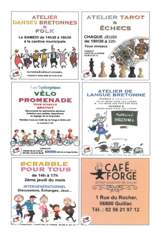 Pour la reprise, le Café de la Forge - Guillac vous propose plusieurs activités :