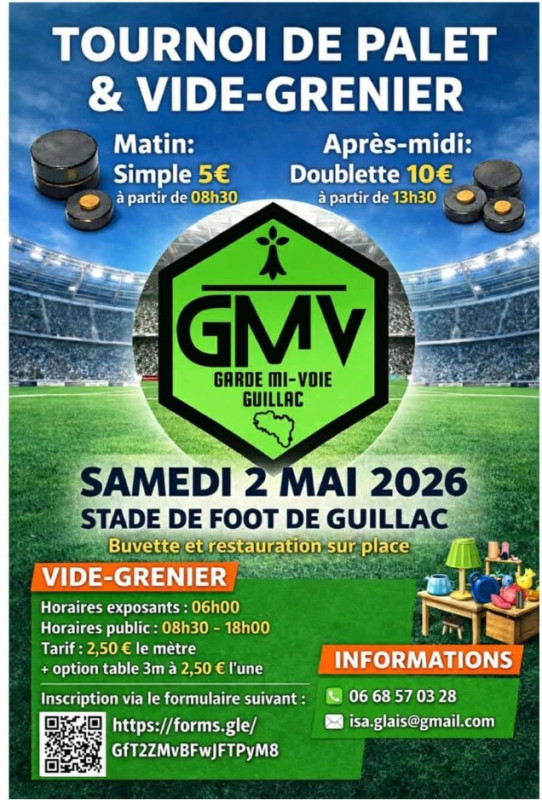 Envie d’une journée conviviale, entre compétition et bonnes affaires ? On vous attend nombreux le samedi 2 mai 2026 au stade de foot de Guillac !