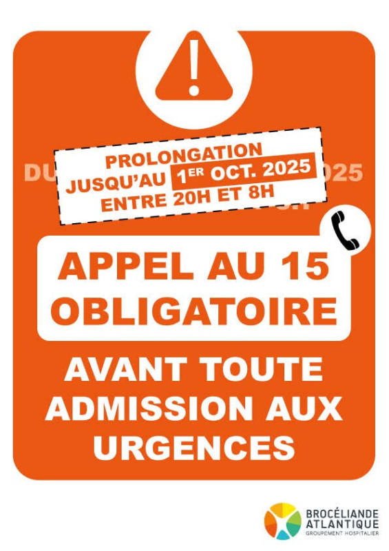 • 𝗟'𝗮𝗽𝗽𝗲𝗹 𝗮𝘂 𝟭𝟱 𝗿𝗲𝘀𝘁𝗲 𝗼𝗯𝗹𝗶𝗴𝗮𝘁𝗼𝗶𝗿𝗲 𝗮𝘃𝗮𝗻𝘁 𝘁𝗼𝘂𝘁𝗲 𝗮𝗱𝗺𝗶𝘀𝘀𝗶𝗼𝗻 𝗮𝘂𝘅 𝘂𝗿𝗴𝗲𝗻𝗰𝗲𝘀 𝗱𝗲 18h30 à 8h00, jusqu’au 1er octobre matin