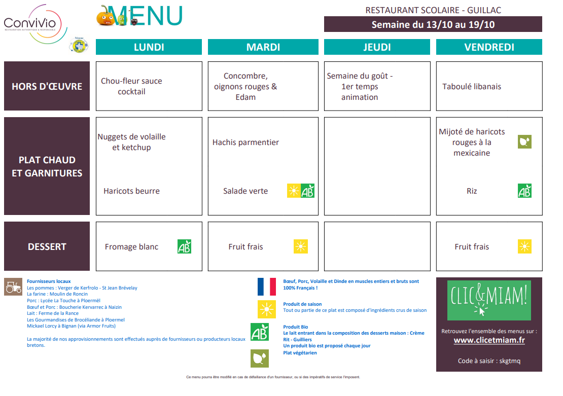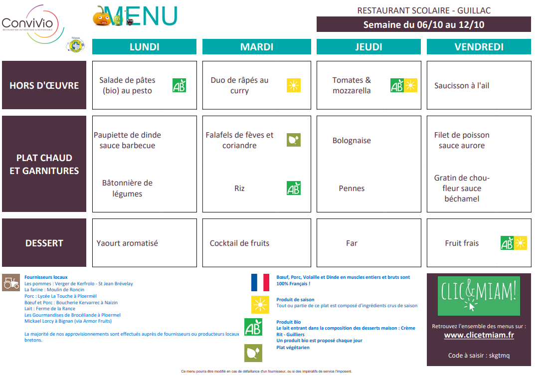 Les inscriptions occasionnelles ainsi que les absences doivent être impérativement signalées à La Médiathèque le matin même entre 8H30 et 9H00, par téléphone 02 97 74 11 60, ou par mail : cantine.guillac@gmail.com