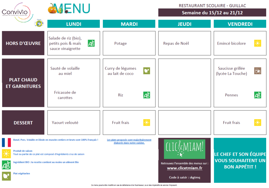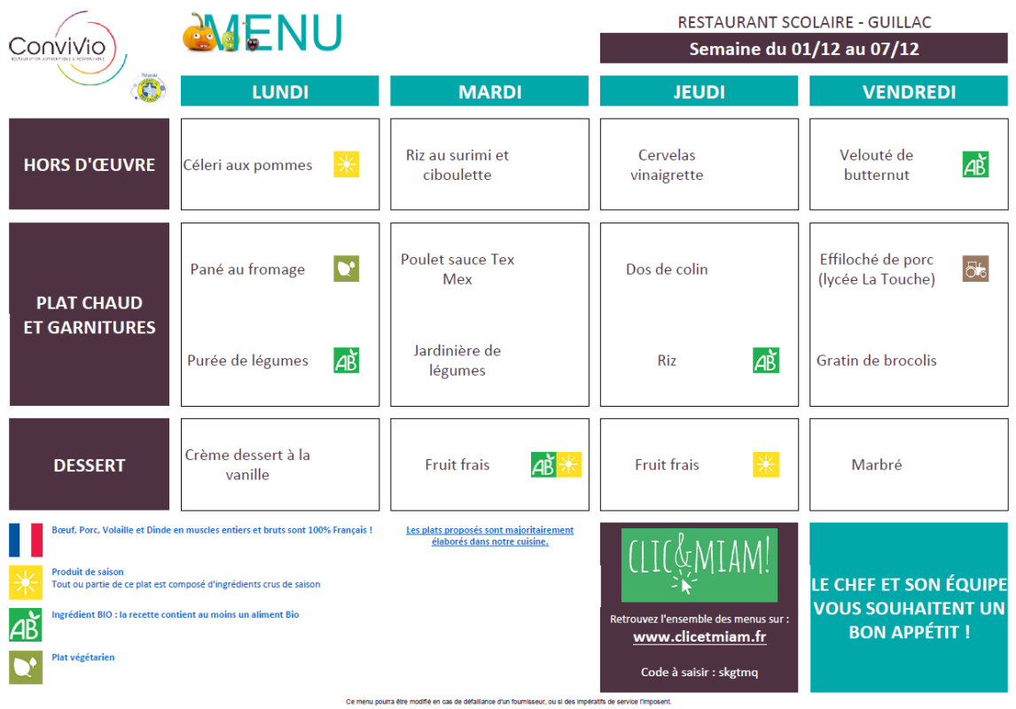 Comme l'année écoulée, les repas seront préparés par la société « CONVIVIO » et livrés en liaison chaude à un horaire fixé le plus près possible de la consommation.